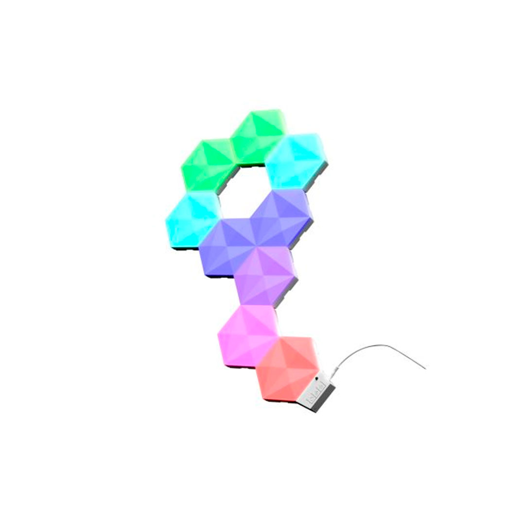 Tu habitación ganará en atractivo y color con el kit básico de paneles de luz LED RGB hexagonales Vybz. Iníciate en la iluminación con este paquete de 9 paneles y amplíalo hasta 21 paneles con el kit de extensión de 3 paneles