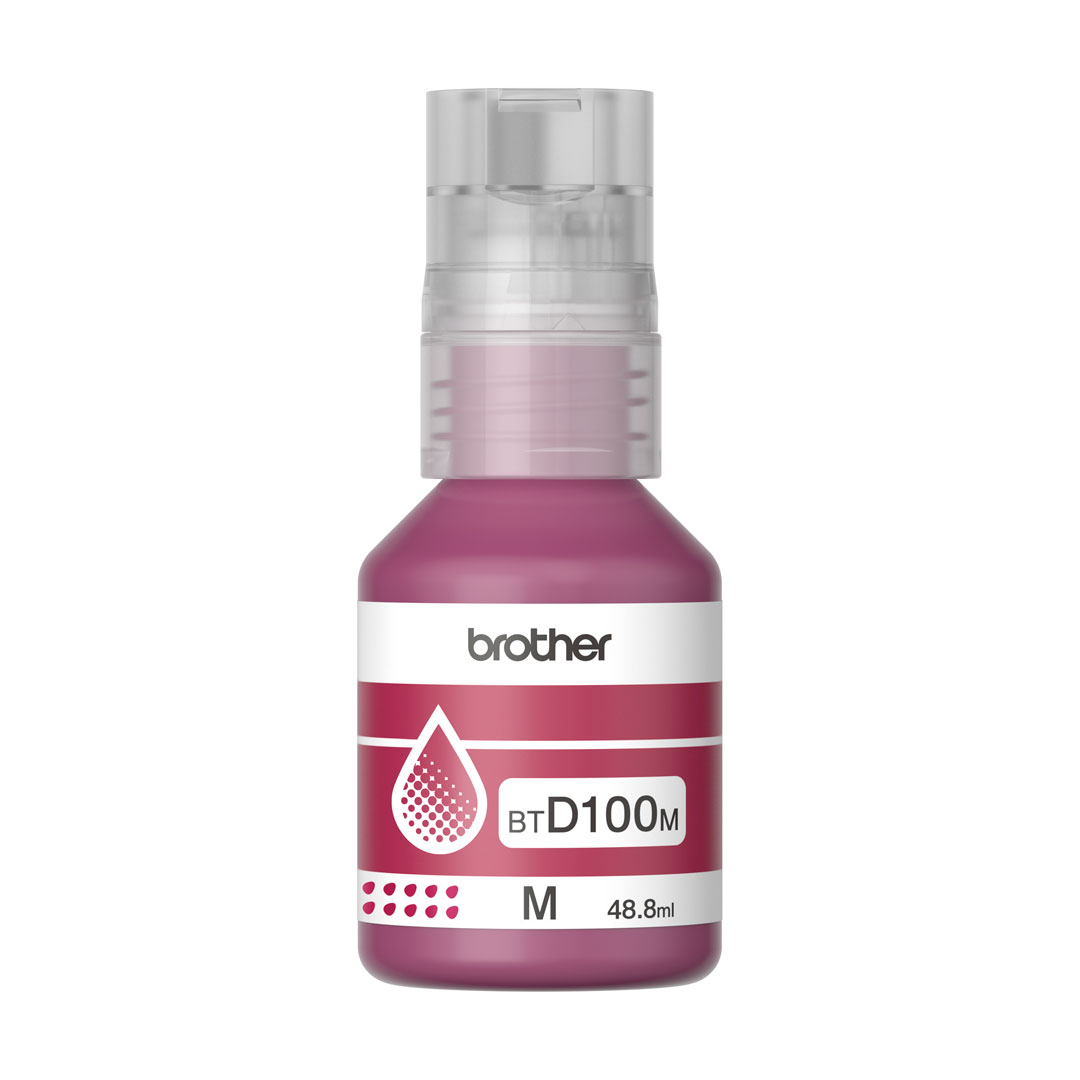 Botella de Tinta Brother Original BTD100M Magenta. Rendimiento 5.000 copias / 48.8ml.