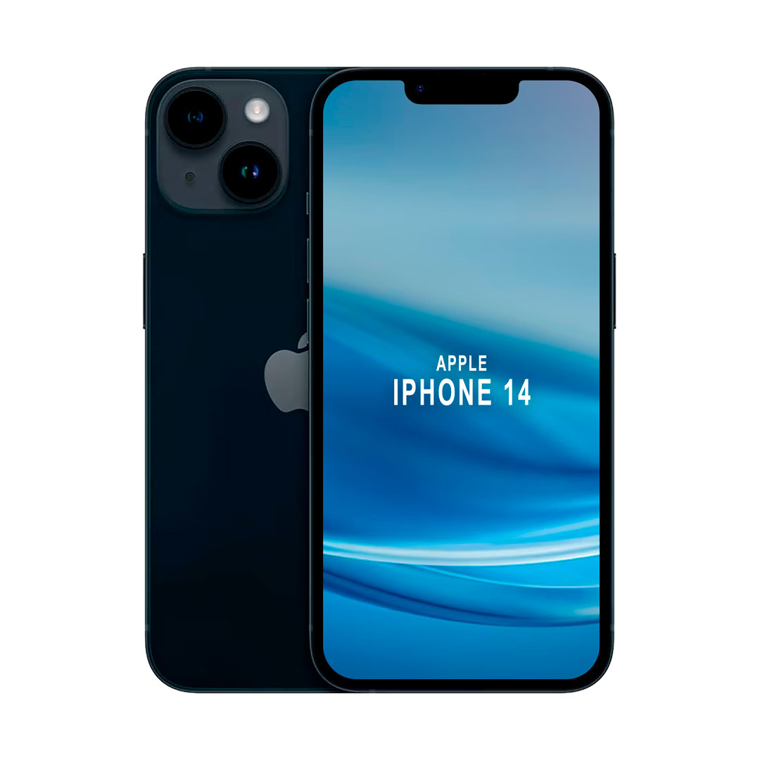 Apple iPhone 14 certificado IP68 sumergible hasta 6 metros y 30 minutos con pantalla Super Retina XDR OLED de 6,1'', procesador de 6 núcleos, 6 GB de RAM, 128 GB de almacenamiento, cámara doble de 12 MP con video 4K, cámara frontal de 12 MP, iOS 16, conectividad 5G, WiFi 6, Bluetooth 5.3, GPS, NFC, desbloqueo por rostro, sensores completos, puerto Lightning, batería de 3279 mAh, peso 172 g y color negro Midnight.