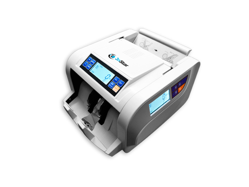 Contador de billetes 3nstar BC1005. Contador de billetes de mostrador con dos pantallas, 2UV, cuenta billetes de polímero y papel y detecta falsificaciones MG Detección automática de medios billones, billones y cuentas en cadena Arranque, freno y limpieza automáticos Funciones de dosificación y suma y autoexamen.