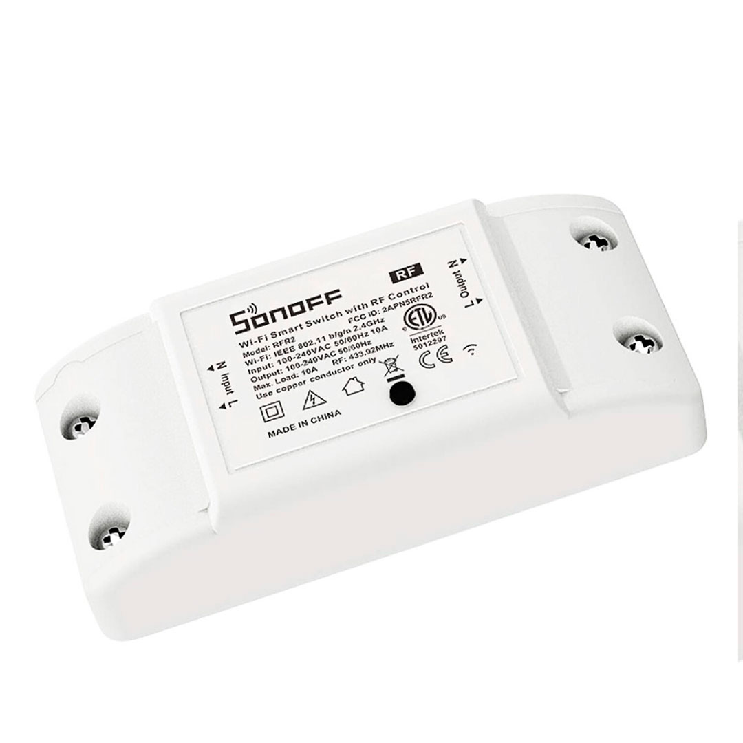 Sonoff RFR2 (M0802010002) es un switch inteligente de 1 canal con conectividad Wi-Fi y RF 433.92 MHz, compatible con Alexa, Google Assistant e IFTTT, soporta hasta 10A AC 100-240V, permite control remoto vía app eWeLink o control RF,M0802010002