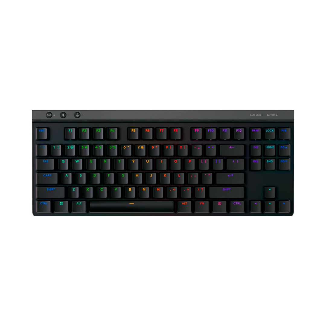 Teclado Gamer Logitech G515 gaming Ligthspeed TKL inal negro. Logitech G515 LIGHTSPEED TKL ofrece velocidad, precisión y personalización con un diseño elegante, discreto y sin sección numérica Este teclado inalámbrico para gaming incluye conectividad trimodal, interruptores mecánicos GL, tapas para teclas PBT de doble disparo, estructura con amortiguación del sonido y LIGHTSYNC RGB Obtén la mejor conexión inalámbrica LIGHTSPEED de su clase con la conectividad trimodal Con solo pulsar un botón, elige entre datos inalámbricos LIGHTSPEED, Bluetooth o con cable Empareja mouses compatibles en un solo USB con el emparejamiento 2:1 Los interruptores mecánicos GL discretos tienen un punto de actuación de 1.3 mm para proporcionar un tiempo de reacción más rápido Elige entre táctil o lineal El diseño sin teclado numérico y la altura de 22 mm superan los límites del diseño para ofrecer un soporte elegante y ergonómico sin comprometer el rendimiento en los juegos Los interruptores lubricados de fábrica, las teclas PBT de doble disparo y perfil discreto, y la estructura en capas para amortiguar el sonido proporcionan una sensación más suave, un accionamiento más rápido y una escritura precisa sin comprometer la durabilidad.